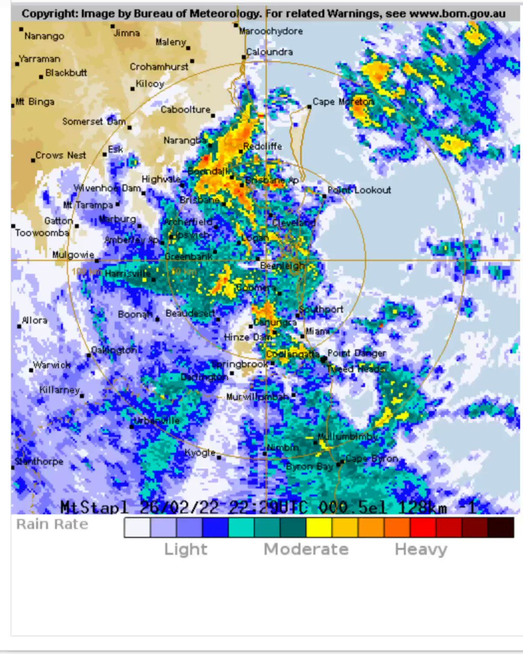 LATEST: Brisbane (Mt Stapylton) Radar Loop BOM forecasting between