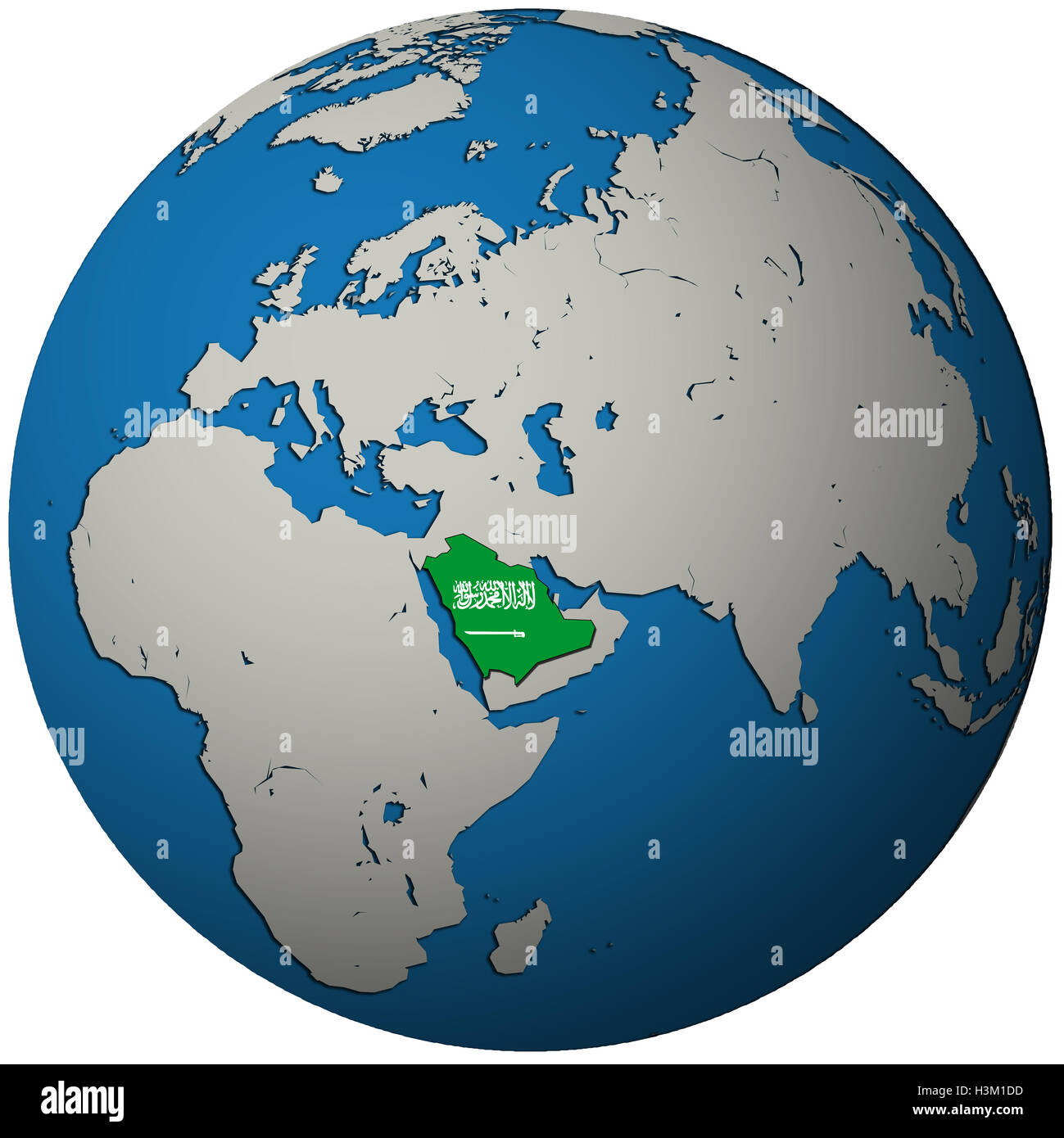 saudi arabia territory with flag on map of globe Stock Photo Alamy