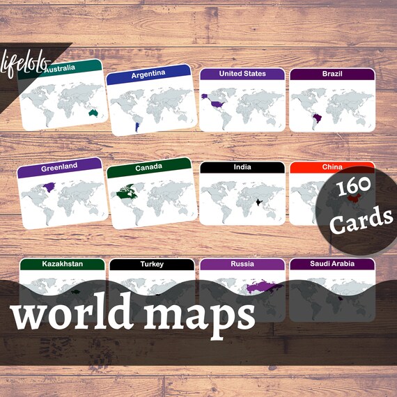 WORLD MAP, Flash Cards, Montessori Material, Map of the World
